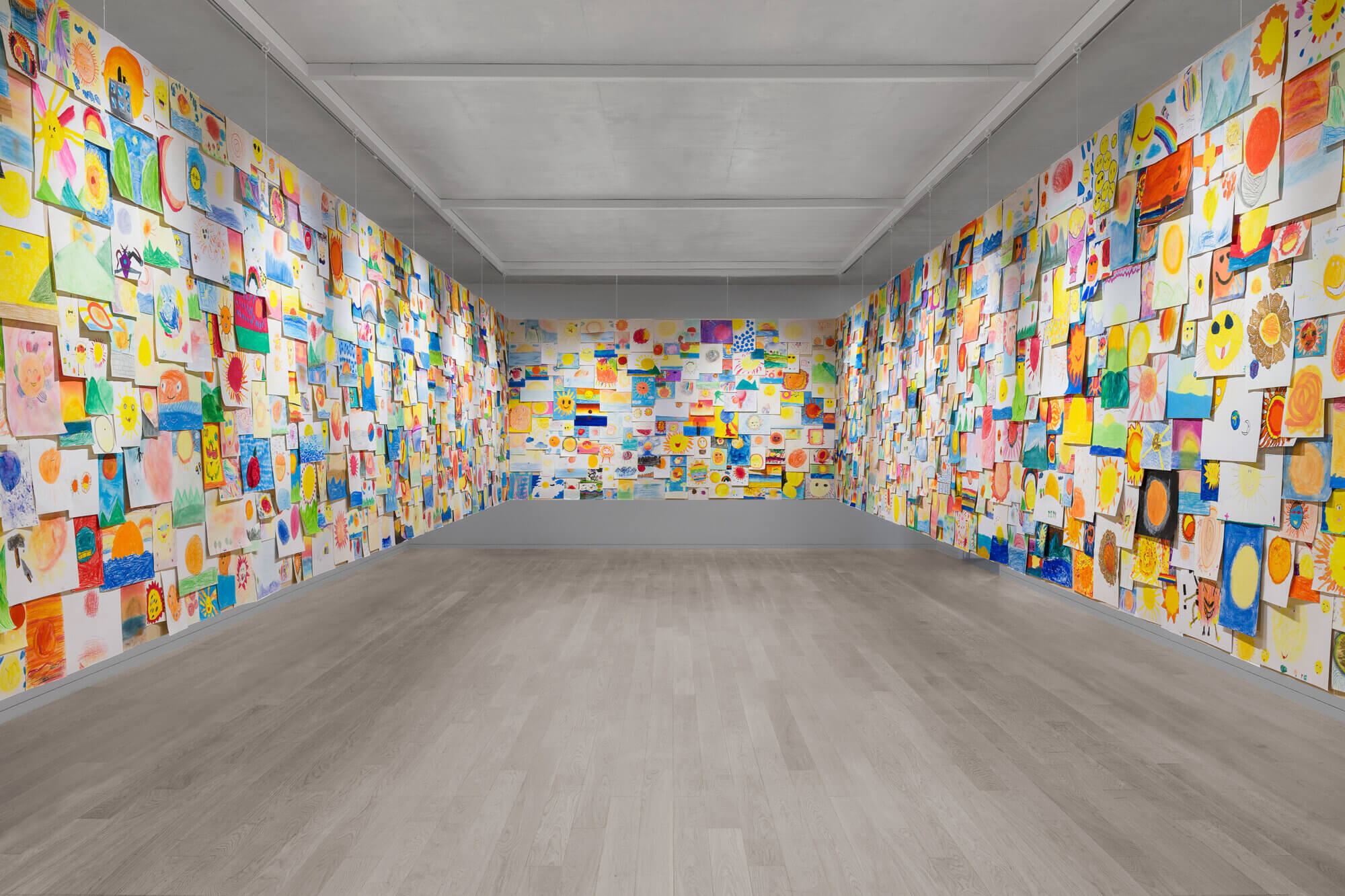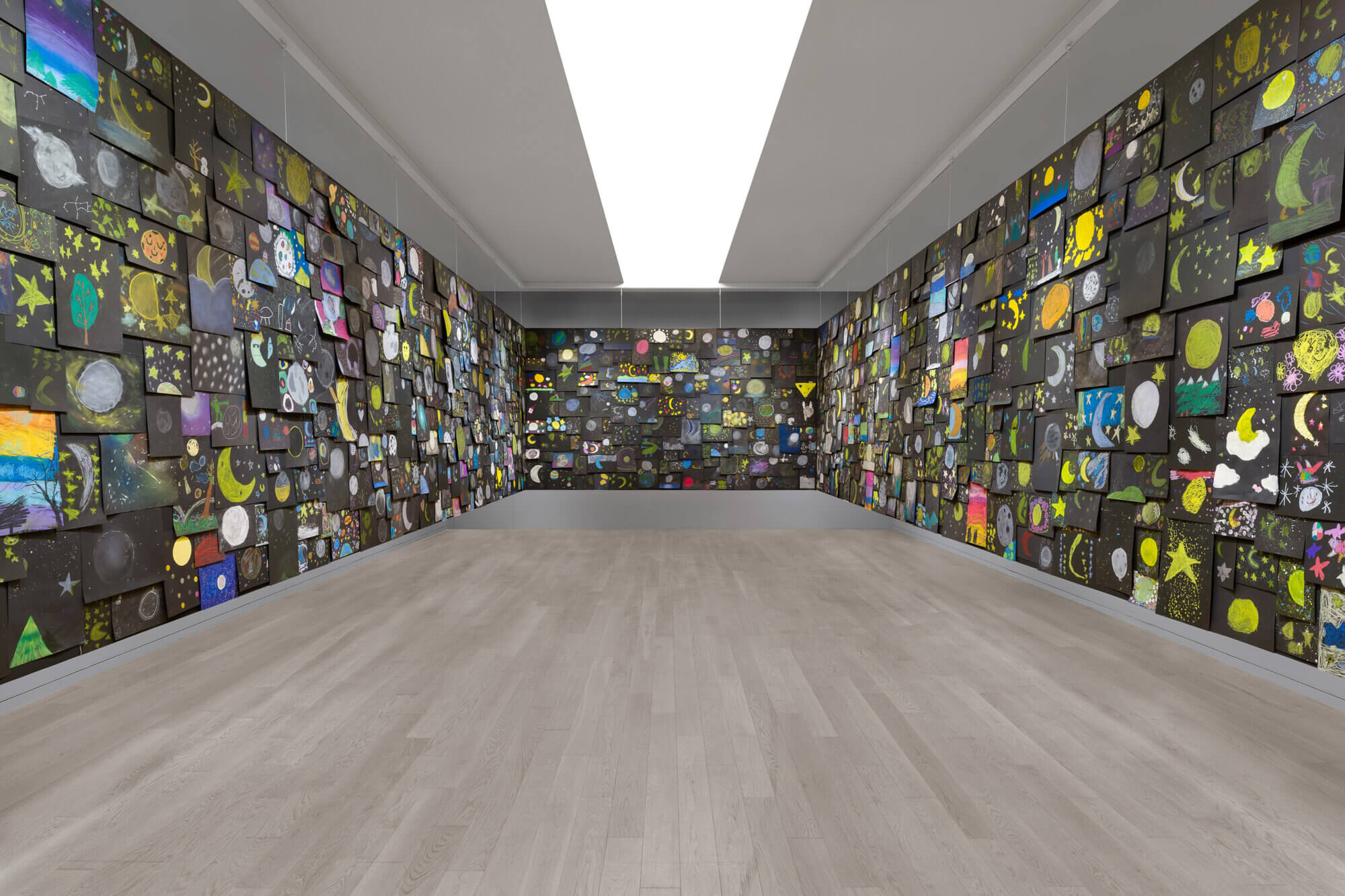 plywood, concrete, sun drawings made by children of oaxaca, new york, china, korea